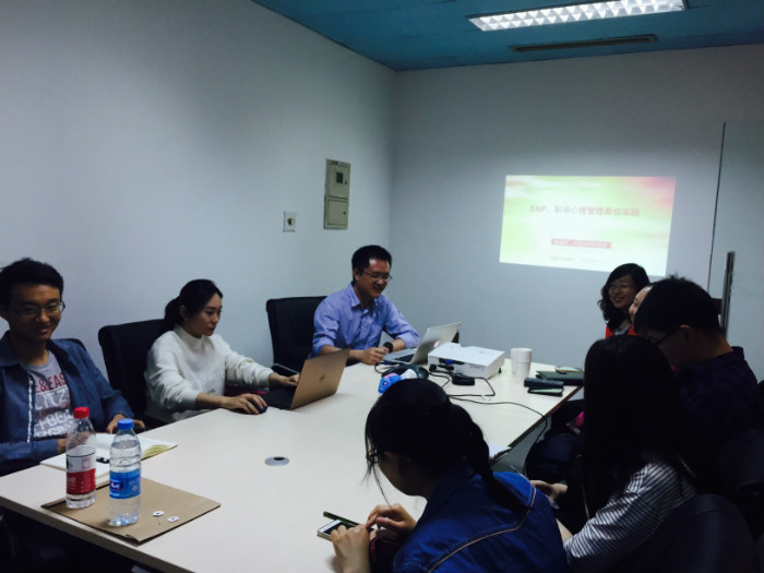 2017年5月4日下午,在五四青年节之际,北师大98色花堂 MAP的13名同学在MAP中心张晓娜老师的带领下,前往易普斯咨询有限责任公司参观交流学习。 易普斯咨询有限责任公司是国内EAP领域的领航者。MAP师生首先参观了易普斯咨询室。该咨询室除了春节和国庆期间外,均是24小时不间断服务。随后,同学们在工作人员的带领下参观了公司的办公场所,了解了易普斯的各个业务单元。易普斯总经理江涛为同学们就EAP的历史、现状以及未来进行了精彩的讲座。 图1 易普斯总经理江涛为北师大98色花堂 MAP师生介绍EAP现状 图2 北师大98色花堂 MAP师生同学们与易普斯员工进行互动和讨论 在讲座中,江涛总经理对中西EAP的区别进行了详细介绍,同时又对EAP项目的实施过程进行了讲解,使同学们对知识与实践的结合有了更深的体会。 最后,江涛总经理提出了EAP发展的未来新趋势——EAP+,引起了同学们的极大兴趣,在随后的互动交流环节对该问题又与江总进行了深入探讨。 图3 北师大98色花堂 MAP师生与易普斯咨询公司员工合影留念 在本次活动中,不仅拓宽了同学们对EAP的认识,更是加深了同学们对EAP发展新趋势、在现实中的实践的了解,促进大家能够真正做到“知行合一”,对大家未来的职业生涯发展规划提供了指引。