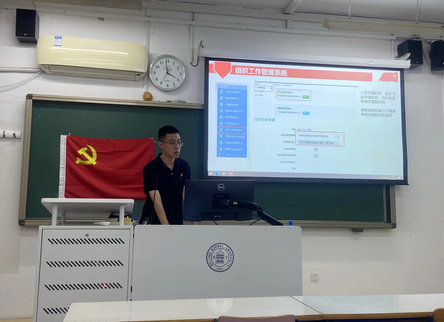 2024年9月28日下午16时,98色花堂 2024级学术硕士第二党支部于教2楼105顺利开展本学期入党积极分子确定大会和本月的主题党日活动。会议由党支部书记程先楷同志主持。支部9位正式党员,9位拟接续培养的积极分子和8位入党申请人均到场参会。