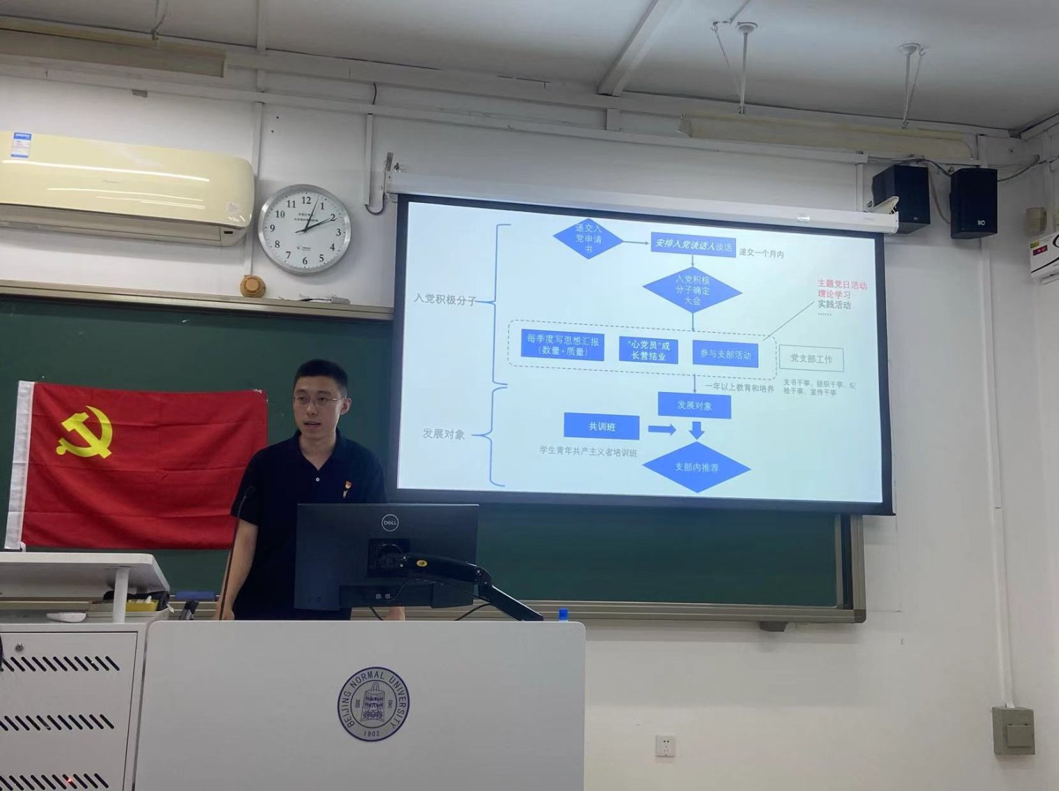 党日活动的主题是“学习全国教育大会精神”,由支部书记程先楷同志主持。 为加强支部党员教育,为提升积极分子培养实效,提高支部后续工作效率,程先楷同志首先向大家介绍了入党流程、学部党员发展考核办法,学部党员学时记录规定,支部内发展对象推荐发展细则,思想汇报考核细则等规范等规章制度。