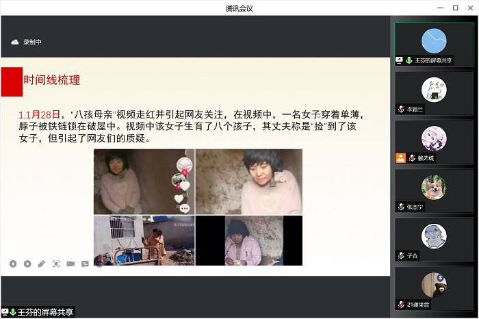 近日发生了许多重要的事情,无论是令全球华人共祈祥瑞,阖家团聚的春节,还是面向世界敞开胸怀,燃情冰雪的2022北京冬奥会的顺利举行,都让我们获得了极强的凝聚感、幸福感和民族自豪感。与此同时,社会方面和国际方面也出现了一些新的事件值得我们关注与思考,张杰宁、王芬和杨梦瑶同志对这些大家关注的时事进行了汇报。 张杰宁同志分享了有关北京冬奥会的新闻,该同志首先提供了北京冬季奥运会的基本信息、冬奥会的文化标识如“冬梦”、“冰墩墩”等,又简要介绍了冬奥会中中国提供的“AI+5G”指挥训练,突出了“智慧冬奥”的科技性。随后她介绍了中国代表团的获奖情况,展示出在冬奥会中取得优异成绩的运动健儿的风采。张杰宁同志将关注点落到了冬奥会的文化自信上,提出本届冬奥会中,中国大胆革新、大道至简的理念,充分展现了中华文化的魅力,获得了来自世界的掌声。最后,她提出了“北京冬奥会的比赛过程中有哪些事情或者瞬间令你印象深刻”、“看到运动员们为国家拼搏努力,你有什么样的感想” 两个问题,留给大家交流与讨论。 王芬同志分享了“丰县八孩女子”的时事新闻。该同志首先梳理了事件的时间线,为同学们讲清楚了八孩女子事件的始末,在陈述事实的过程中,她还关注到了徐州方面发表通告之中存在的争议,希望大家可以理性地看待与思考问题。最后,她提出了“我们怎么样去看待舆情对政府公信力的影响”、“身为一名大学生,在这样的舆论风暴之中我们应该保持一个什么样的角色”两个问题,引发大家的思考。