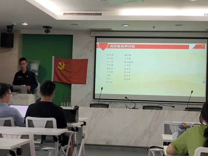 会议第三项,全体党员同志依次进行两分钟左右发言,分享讨论近两月展开主题教育的心得体会。同志们就习近平新时代特色社会主义思想、二十大报告等主题学习内容展开分享,从中国式现代化、党章修订、科技创新能力和全面依法治国等多个角度共同探讨在主题教育学习中的学习成果与思考。