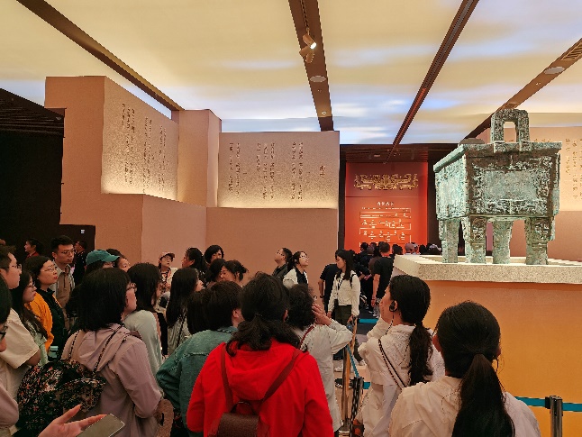 5月12日上午,全体师生一同前往殷墟博物馆,共同探寻文明的奥秘,领略古代文明的魅力,感受中华文明的博大精深。在殷墟博物馆,师生们聚精会神地倾听讲解员的细致介绍,深入了解殷商时期的社会生活、甲骨文等文化成就,汲取文化智慧,增强文化自信。