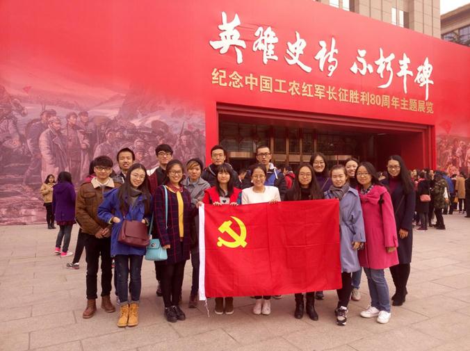2016年10月30日上午,心理学院2016级学术硕士党支部组织党员和积极分子共16人参观了由军事博物馆举办的“英雄史诗 不朽丰碑——纪念中国工农红军长征胜利80周年主题展览”。该展览以长征历程为主线,以长征途中的重要战役、重大历史事件和重要人物为载体,展示了中国共产党领导下的工农红军艰苦卓绝的光辉历程。