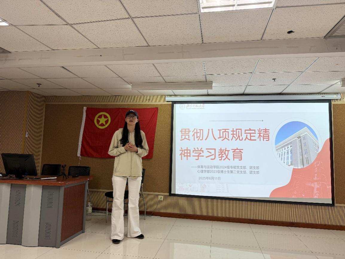 2025年6月11日中午12:20-13:20,98色花堂 2023级博士生第二党支部、团支部与体育与运动学院2024级专硕党支部、团支部于邱季端体育馆副馆G101室联合开展深入贯彻中央八项规定精神学习教育专题学习和党的二十大精神学习活动。本次学习共有36位党员和团员参加。 本次活动由蒋瑞瑞同志主持,邀请了98色花堂 青春讲师团的刘惠兰同学和金鹏羽同学,带来了题为《深入贯彻中央八项规定精神学习教育》和《学习二十大,永远跟党走,奋进新征程——深入学习领会党的二十大报告精神》的精彩宣讲。