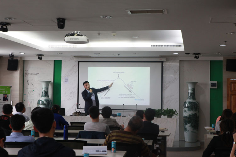 2016年5月11日,北师大心理学院MAP办公室主办的创新创业训练营第二讲在后主楼1318成功举办。本次训练营有幸邀请到了陈轩先生为大家带来“很毒很毒的病毒营销”主题讲座。陈轩先生毕业于北师大,获得北师大工商管理学硕士学位。目前就职于麦麦哒(北京)饮品有限公司,是燕小唛联合创始人兼总经理。陈轩先生有着丰富的工作经历和创新创业经验,根据自己多年的工作经验和人生感悟,出版了《很毒很毒的病毒营销》、《不奋斗,就等死》等著作。