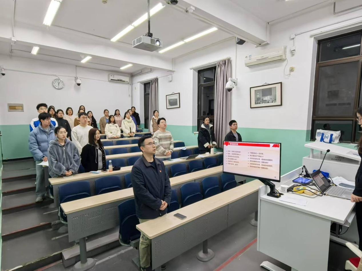 2024年11月16日晚19点00至19点40分,心理学部2023级博士生第二党支部2024年民主评议组织生活会在教十楼108召开。会议由党支部书记邹昕童同志主持,党支部指导老师胡思源老师亲临现场。党支部18名党员同志以及积极分子同志们前来参会,2名党员同志请假。 会议开始,党支部全体成员起立,合唱《国际歌》。
