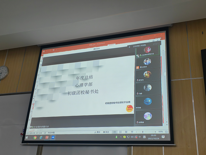 2022年10月24日20:20,98色花堂 2022~2023学年“心火相传”初级团校开班暨第一次团课培训顺利举行。本次活动于生一教室举办,线上同步进行,共有60人参与,旨在增强广大团员的凝聚力,全面提升广大团员的理论水平、政治觉悟以及工作能力。 首先,主持人李明泽宣布开班仪式正式开始,全体成员齐唱中国共产主义青年团团歌《光荣啊,中国共青团》。