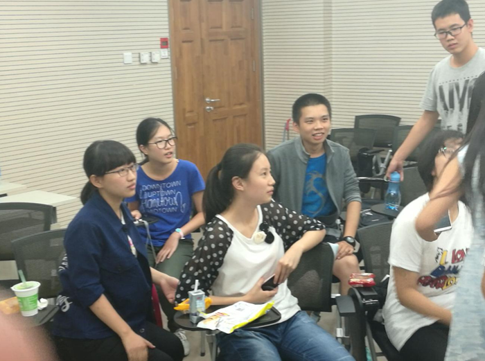9月17日,2016级三班共42人于后主楼1318举行了“但愿人长乐,年年共佳节”——中秋欢乐汇活动,在班级四位联络员的安排和引导下,同学们度过了一次精彩而富有意义的中秋活动。 为了能使大家进一步互相熟悉,增进感情,放松地融入3班大家庭,本次活动以中秋节为契机,进行了一系列集体的游戏、互动。3班同学在游戏中都逐渐感受到了中秋的温馨,忘记了陌生与拘束,月饼的香甜、游戏的欢乐,使大家把彼此都当成了家人,感受到了中秋的温暖。 图一你演我猜 本次活动分为五个环节,每个环节都是富有互动性的小游戏,一开场的抢凳子、考验默契的你演我猜、丰富知识的“一站到底”、爆笑欢乐的一见你就笑,以及最后的游戏萝卜月饼蹲,长达两个小时的晚会在欢笑声转瞬而过。 一见你就笑环节特意让同学讨论让谁出场,组内讨论激烈。相信本次活动后3班同学彼此一定会更加熟悉,一定会成为一个更紧密的集体! 图二“一见你就笑”讨论环节 (供稿,供图:李显浩) |