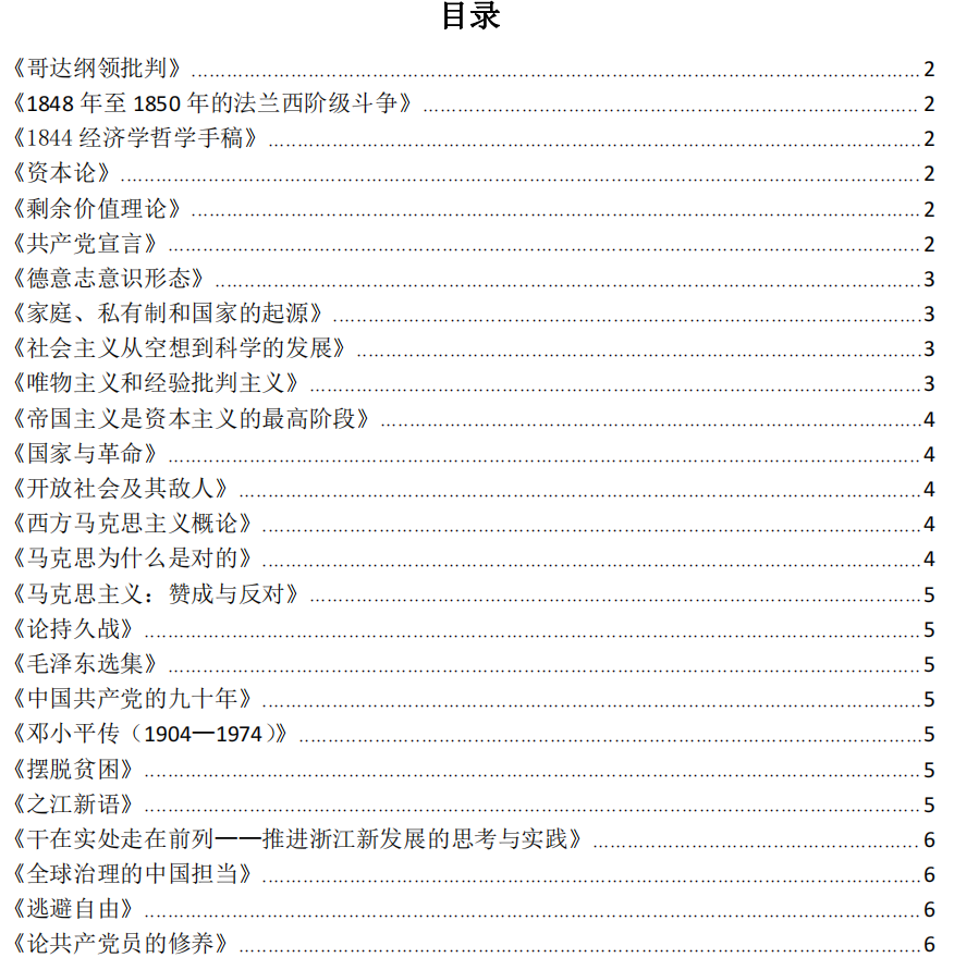 研究生第五支部于上学期布置了支部内同志们的经典著作学习任务,并为大家提供了理论学习的参考书目,包括但不限于《毛泽东选集》、《共产党宣言》、《之江新语》等内容。