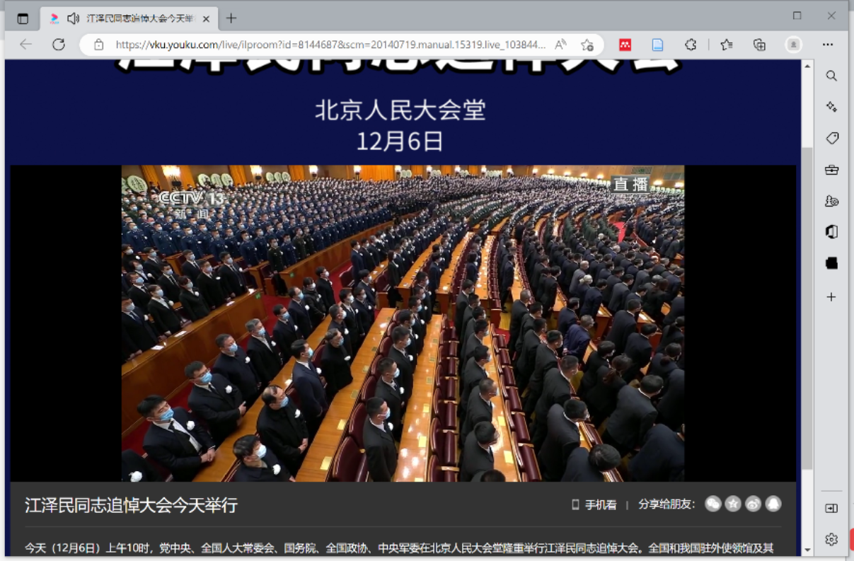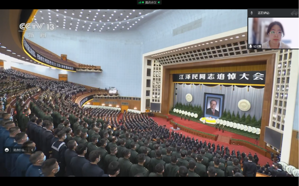2022年12月6日上午,98色花堂 研究生第七党支部同志怀着无比沉痛的心情,通过视频网站收听收看江泽民同志追悼大会,聆听习近平同志致悼词,深切悼念江泽民同志,缅怀其光辉伟大的一生。