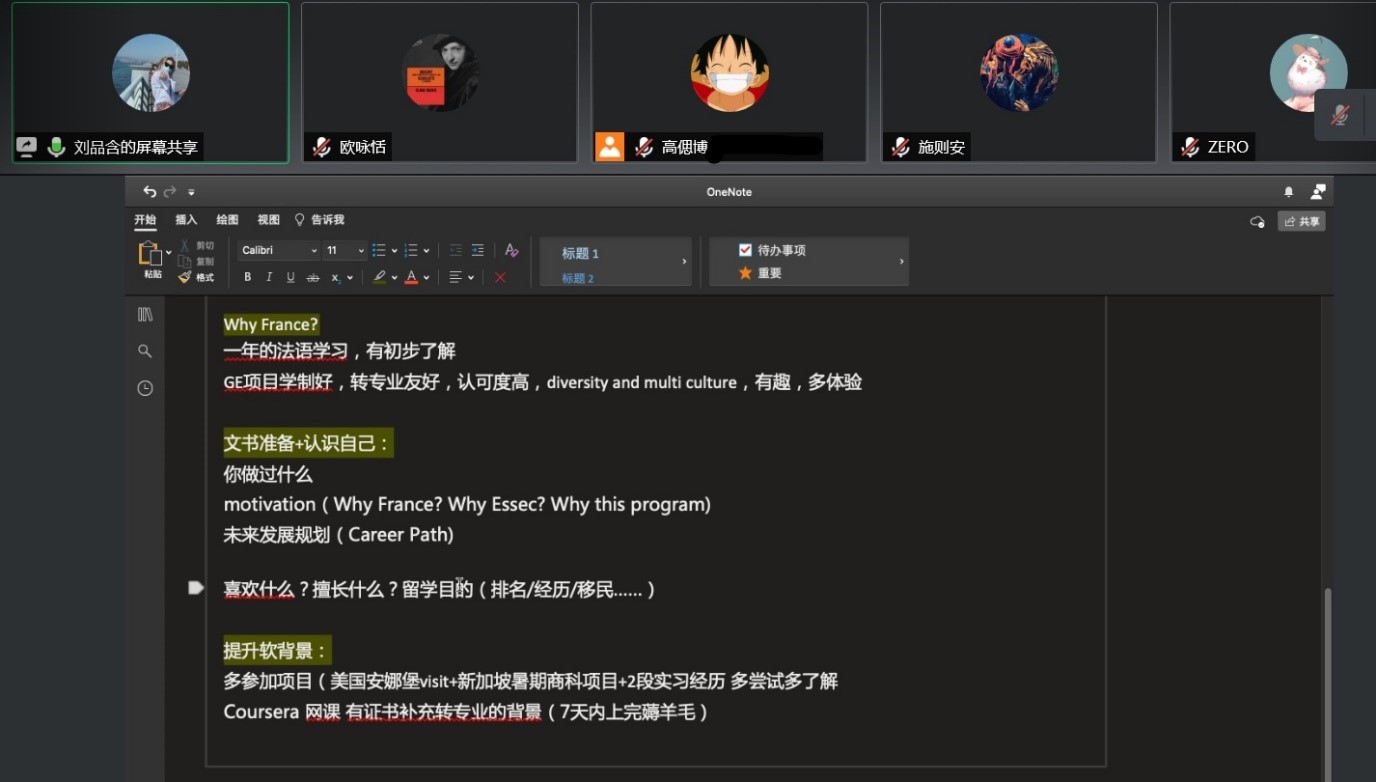 2021年5月16日晚20:00-21:00,学业辅导室举办了线上留学经验分享会。本次分享会邀请到了2017级三位即将出国留学的同学,为2018级准备出国的同学介绍了自己的申请准备、申请流程和申请心得。二十余名同学在线上参加了分享会。 赵子豪同学为大家介绍了他的申请背景与申请情况,以及新加坡、英国和香港的学校和项目特点,为同学们寻找暑研提供了实用的建议。刘品含同学以“适合自己的才是最好的”作为分享主题,鼓励大家在申请时发掘自身潜力,在本科期间多去尝试各种交换、暑校、实习等项目,提升软实力。宋雨笑同学则重点为大家介绍了加拿大申请的优势和劣势,建议大家开拓视野,在申请时不需局限于本专业的项目,要根据未来的职业发展对自己的学业进行规划,同时也要了解目标国家的政策。 在嘉宾分享的过程中,同学们也提出了关于寻找暑研、各国学校学制、中介等问题,嘉宾们一一做出了回答。 通过本次分享会,同学们了解了近两年各个国家硕博士项目的申请概况,对留学需要进行的准备有了更清晰的认识,大家获益匪浅。