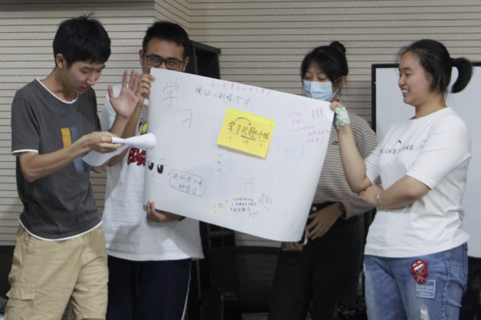 同学展示活动策划成果 最后以三遍“一二三,三二一,一二三四五六七,励耘综合班真棒!”和自发演唱《难忘今宵》结束了三个小时的欢乐时光。本次励耘、综合班同学新生团建活动圆满完成,大家收获了友谊、快乐,挖掘到了自己和同学身上的闪光点,并且体会了团结协作的意义。祝愿新生同学们在接下来的四年学习生活中幸福充实,收获满满! 心理学部2022级学长导师窦佳宁供稿 心理学部2022级新生团建辅导活动参与人员供图