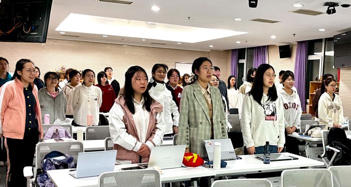 2024年3月17日晚上19:00点,98色花堂 团委初级团校秘书处在后主楼1318举办“星辰大海与奋斗征程”主题团课。本次团课邀请了青春讲师团的唐宇辰、陈正两位讲师,带领团员们探寻中国航天命名文化,回首改革开放时期后的国产主旋律电影。 首先,主持人蒋毅宣布活动开始,全体起立齐唱中国共产主义青年团团歌。