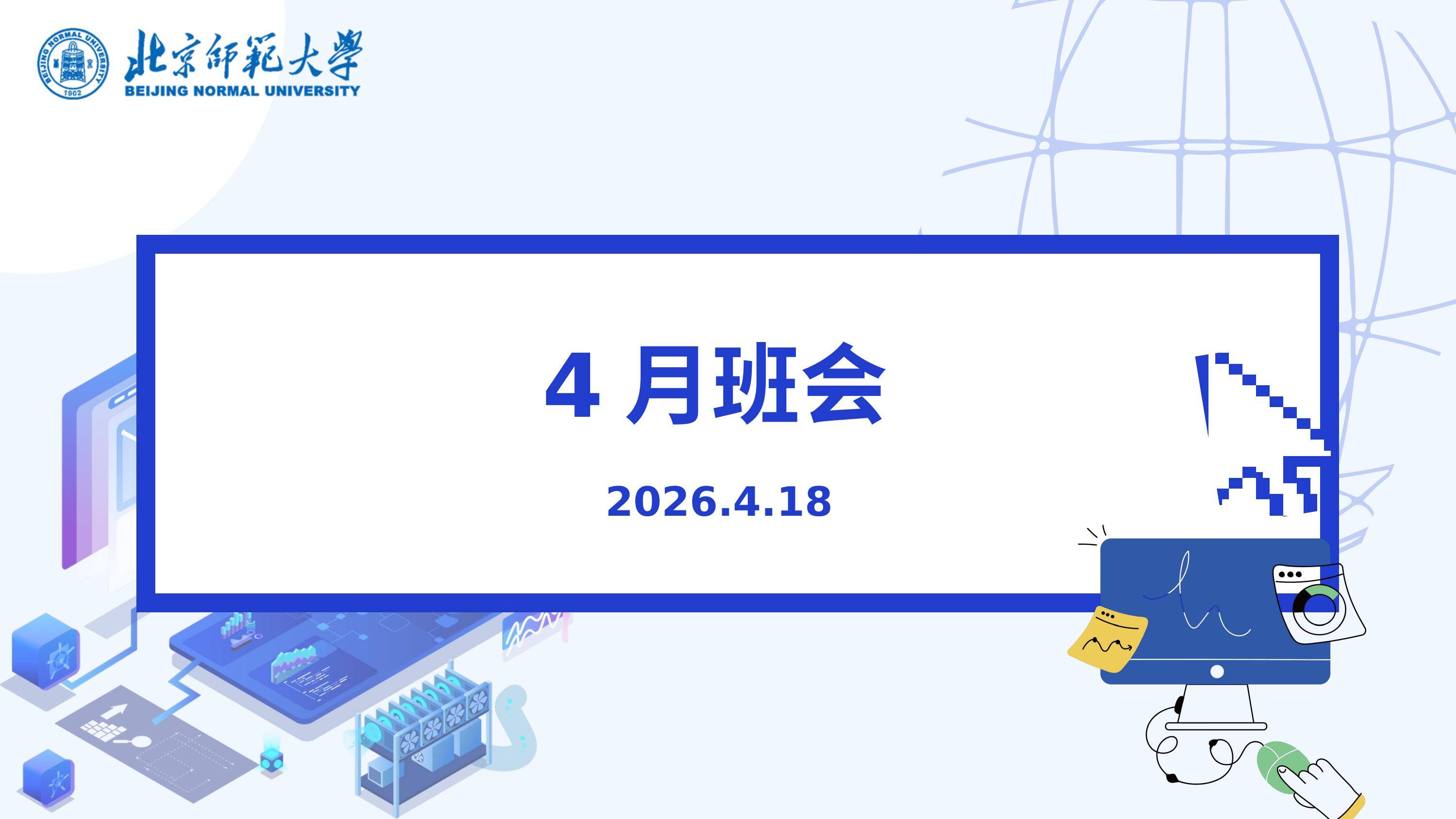 2026年4月18日18时30分,2023级本科励耘班在线上召开4月班会。班主任王乾东老师主持班会,班长詹皓钧同学围绕生涯发展活动、自习室资源及安全教育等事项进行详细通报,班级全体同学参加。