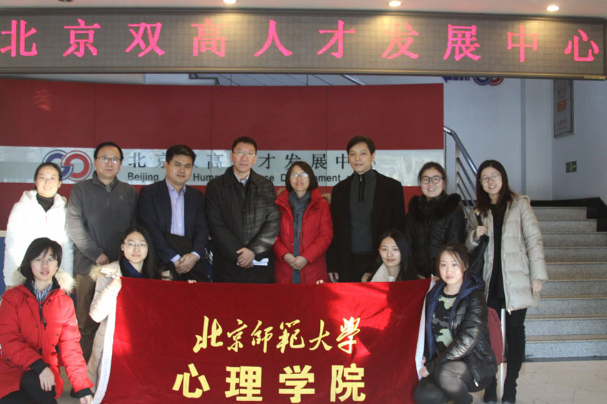 北京双高人才发展中心的袁方主任介绍了北京双高人才发展中心的基本情况,提出希望筛选一些优秀的人才,实现资源共享。刘金成副主任、徐利副主任和人力资本集团总裁蒋北麒总裁都纷纷表达了希望提升理论和技术,学教研相结合,坚定不移的开展好合作之路的希冀。 签约暨授牌仪式成功举办之后,心理学院师生在北京双高人才发展中心进行了参观并进行了小型会谈,会谈由第一资源研究院王勇院长主持,会上双高集团张钧副总裁进一步介绍了北京双高人才发展中心的组织结构,部门职能和发展方向。考评一部闫坤副部长深入具体地介绍了心理测评在人才测评中的应用,人力资源招聘专员武诗文详细介绍了校招流程和相关信息并针对提问进行了解答。