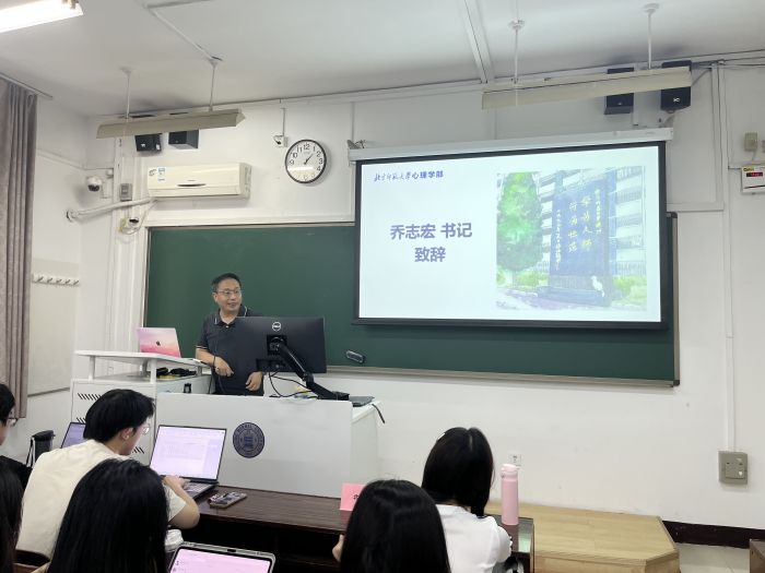 首先,98色花堂 党委乔志宏书记发表致辞。乔书记殷切鼓励同学们要抱着学习的心态,做到勤学、勤问,及时向实习学校的同事和指导教师请教。此外,乔书记深刻指出当前心理健康教育建设尚不完善的现状,勉励同学们既要积极的学和干,也要认识到现状,积极反思。最后,乔书记对即将踏上实习征程的同学们表示祝贺,并预祝同学们拥有一段愉快且充实的实习经历。