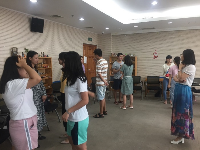 2019年9月9日下午2:30,2017级学硕2班本学期第一次班会以团体辅导的形式在后主楼1318举行。班主任黄利老师主持了这次团体辅导,班级共25人参加。 同学们参加班会 由于这是新班主任和大家的第一次见面,因此黄老师首先做了自我介绍,并简单介绍了本次团辅活动,随后带领大家进行热身活动。 本次团辅的第一个活动是幸运大转盘,所有的同学分成两组,分内外两圈站好,随机组合和对面的同学选择打招呼的方式,并交流自己的暑期经历。每一轮结束后,根据班主任的指令顺时针或逆时针转动,再和自己面前的同学进行同样的交流。 幸运大转盘 最后一个活动,班主任带领大家体验了OH卡。所有同学分成6组,每个人抽取一张OH卡,和本组的同学分享自己如何理解抽到的图片,有什么感受,根据整组同学的图片内容按顺序编一个上下有联系的故事,最后分享了在这个过程中感受到的对他人的认识等。 同学们体验OH卡 最后,每个人用一个词总结了自己在下午的团辅中的感受。本次团辅活动,让同学们加深了相互的了解,增强了班级凝聚力。虽然即将面对分离,但是过往的温暖经历总会留在大家的记忆里。 供稿:程选州 供图:李昌锦 |