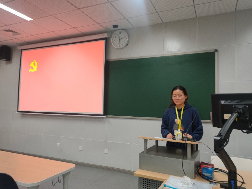 接下来,刘东雪、钱文丽宣读介绍人意见。刘东雪同志表示,范奕敏同志自成为预备党员以来,从思想和行动上都积极向党组织靠拢,不断加强政治学习。在预备期内,思想觉悟和理论水平都有了很大提高,入党态度进一步明确。对自己缺点不足的认识加强,也能够在平时严格要求自己。钱文丽同志表示,奕敏同志在预备期内,能够保持学习党的理论知识,并能结合自己的所学专业进行反思与思想进步。在工作和学习方面,奕敏同志预备期正值硕士毕业到博士的转变,能适应良好,克服困难,积极投入实验室的科研和工作,并且也积极为同学服务,平时能够团结同学,在同学间获得了良好口碑。此外,该同志的入党转证书内容也十分真挚热诚。两位介绍人均表示同意其如期转为中共正式党员,同时希望在转正后,范奕敏同志能够更加系统地学习党的先进理论知识,尤其是二十大精神,积极向优秀党员学习,不断提高政治素养,团结同志,取得更加突出的成绩。