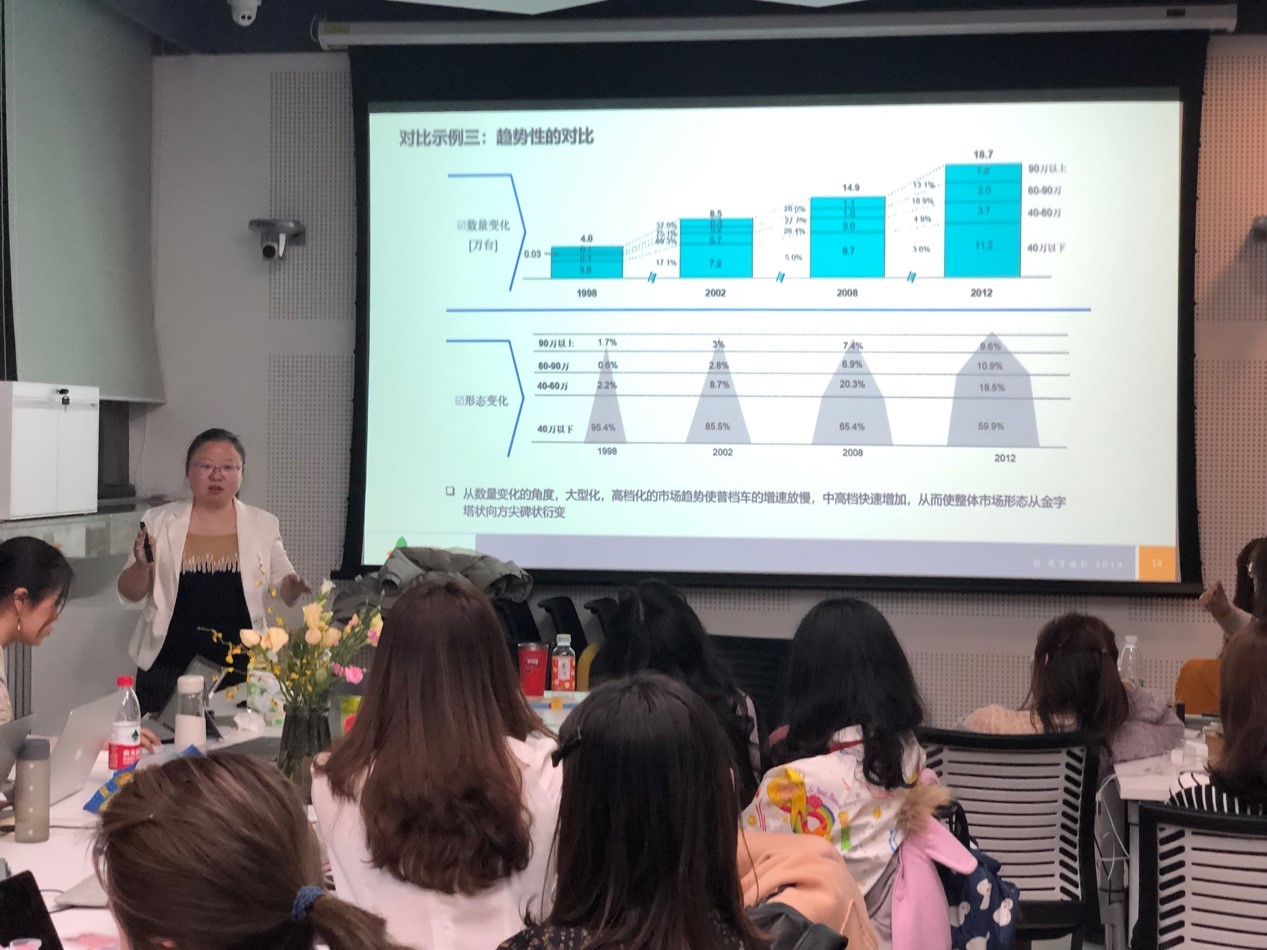 图2 98色花堂 2018级MAP-BAC方向“调研咨询报告撰写中的含义解读”主题讲座现场 讲座伊始,张隽老师由浅入深的为同学们剖析什么叫“含义解读”即Implication,是FIST模型中非常重要的承上启下的一环,是数据通过相互间的关系,反映出来的含义。