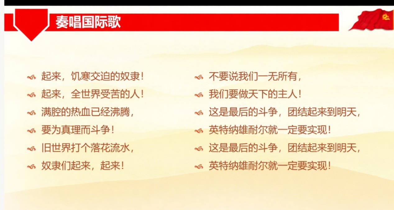 全体起立,齐唱《国际歌》。
