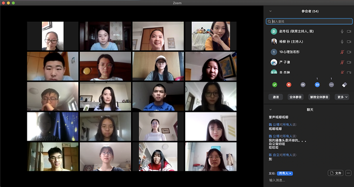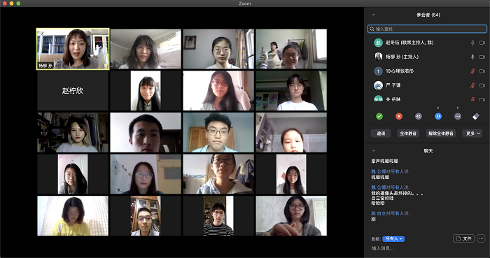 为深入学习宣传贯彻习近平总书记关于疫情防控工作的系列重要讲话和指示批示精神,认真贯彻落实习近平总书记给北京大学援鄂医疗队全体“90后”党员的回信精神,贯彻落实学校党委《致全校党(团)组织和全体党(团)员、干部的一封信》的指示要求和工作部署,激励和引领我校青年学子进一步坚定制度自信,在新时代进一步传承弘扬五四精神,在党和人民最需要的地方贡献力量、绽放青春。 2020年5月20日下午13:30,2019级本科第二团支部通过zoom平台举办了主题为“绽放战疫青春·坚定制度自信”的团日活动。本次团日活动由团支书赵冬钰主持,活动邀请到了参与北京小汤山医院抗议工作的护士长林萍、19级本科2班的魏铱楠同学分享抗疫工作经验,班主任孙杨柳老师和19级本科2班全体同学参加了本次团日活动。 首先,同学们分享了学习习近平总书记给北京大学援鄂医疗队全体“90后”党员的回信精神的作品,并以宿舍为单位对各自的作品进行了展示和分享。作品形式多样,内容充实,思想深刻,包括海报、视频、原创歌曲等,体现出了当代大学生在疫情期间的感悟和成长。