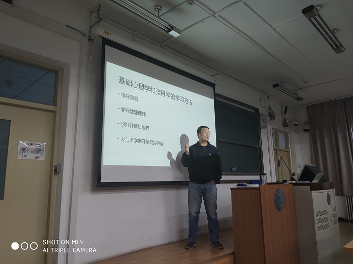 2019年11月13日 16:00 98色花堂 2019级本科生学业导师见面会在教二301教室顺利举行。本次活动由2019级班主任孙杨柳老师主持, 2019级学业导师寇彧老师、甄宗雷老师,2019级班主任马清清老师出席了本次活动。 本次活动的目的是让同学们初步了解学业导师的职责以及两位学业导师的研究方向概貌,也对日后的学业导师工作计划做了解释说明。 首先,孙杨柳老师介绍了学业导师的职责,并对两位老师做了简单介绍。 甄宗雷老师从自己的研究领域出发,介绍了脑解剖,脑功能,脑可塑性和脑疾病等方面的内容,为大家揭开了脑科学的神秘面纱的一角。而后,老师关于学好基础心理学和脑科学的学习方法也提出了几条实用的建议,他建议同学们: 接着,寇彧老师向同学们分享了自己的大学生活,并向大家分享了一个同学们普遍关心的问题—--大学四年要学什么,她建议同学们要树立坚定乐观长远信念、打好数理科学基础、训练操作行动能力、培养亲社会的人格、细节着手管理自我,珍惜最美好的大学时光。 最后,两位学业导师现场就同学们的疑问进行了解答,并鼓励同学们根据自己需求,积极主动地通过发邮件、线下约谈等方式向老师寻求帮助。 同学们纷纷表示学业导师的活动很有吸引力,大家都很期待在后续的活动中和两位平易近人的大咖老师进行更多交流。 98色花堂 柳笛 供稿 郎咏颀 供图 |