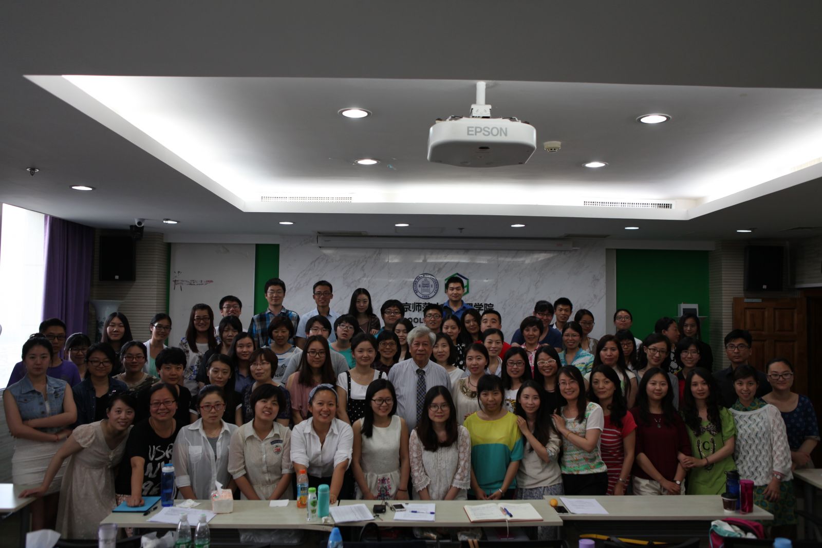 “所谓咨询,是我们陪伴个案走一段路。”萧文老师如是说。 2015年5月21日至24日,我院有幸邀请著名华人咨询和督导专家、台湾暨南大学教授兼心理辅导与咨询研究所所长萧文教授为2014级应用心理(EAP方向)专业硕士的学生带来为期四天的心理咨询课程。窗外阳光温热,教室欢笑起伏,仿佛整个校园都在萧文老师寓意深刻的连珠妙语中变得更加灿烂和美好。 萧文老师致力于实践和推广后现代心理咨询,在课程的开篇就用一系列自己创作的关于寻找原著民的故事,出神入化、循循善诱地为同学们阐述后现代心理咨询的哲学理念。他用幽默的方式道出了“个案之所以为个案,是因为他是个案”这个看似简单,实则深刻的哲理。他谈到,每一个个案所表现的想法和行为都是独一无二的。而咨询师是与个案不同世界的人,必须了解个案的经验和想法,因此要尽量避免将自己的知识、背景、文化、价值观带入咨询,而要进入个案主观的生命中全盘接纳他们。唯有这样,个案才能感到被关注、被看见、被接纳,当个案感受到咨询师在真诚地陪伴他们走一段路时,咨询才真正开始。同学们在故事中恍悟,又从故事中升华,在萧文老师的指引下,渐渐触摸到了心理咨询的真实脉络。 在接下来的时间里,萧文老师从细节处入手,从不同的疗法到不同的技术,来解读咨询师的咨询行为。其中,他提到咨询师的咨询首先要从倾听做起,听个案说了什么,用什么方式说和为什么要这么说,同时不要提出自己的建议,因为咨询师的建议不是个案的经验,更可能成为个案的负担。之后,萧文老师又讲授了非咨询因素在影响咨询效果中的重要分量,接着谈到了有效的督导的内容、主体、任务以及与个案讨论的区别,最后向大家解析了他独创的短期焦点治疗模式。他谈到,人是主观的动物,通过实体的经验,人才有了解自己的机会,而他的治疗模式正是通过调整个案的经验,比如寻找、想象成功经验,来帮助他们处理不良情绪。 除了备好的教学内容,萧文老师鼓励同学们大胆提问,并且对于每一个同学的提问都认真耐心又不乏生动风趣地解答,在一轮轮的互动中,同学们的探索热情被彻底释放,教室内的欢笑声此起彼伏。萧文老师精彩纷呈的课程改变了同学们的时间知觉,四天的课程就在欢笑声中不知不觉地画上了句号。课程结束时,同学们已经将这个用朴实话语阐述深刻道理的老顽童视为心中的偶像,掌声经久不息。大家纷纷对他表示不舍,希望再次聆听他的教诲,甚至有同学要将他的课程录音抄录下来以随时回顾。 萧文老师用身体力行向我们说明,积极的关怀、全面的接纳、真诚的陪伴,不仅是心理咨询必备的要素,更是为人处事的准则,正如他的座右铭所说:与人为善。 感谢萧文老师陪伴2014级EAP班的全体同学走过这四天美好且有意义的路,期待能够有幸再次同行。 图一 萧文教授在给北师大心理学院2014级应用心理专硕(MAP)讲授课程