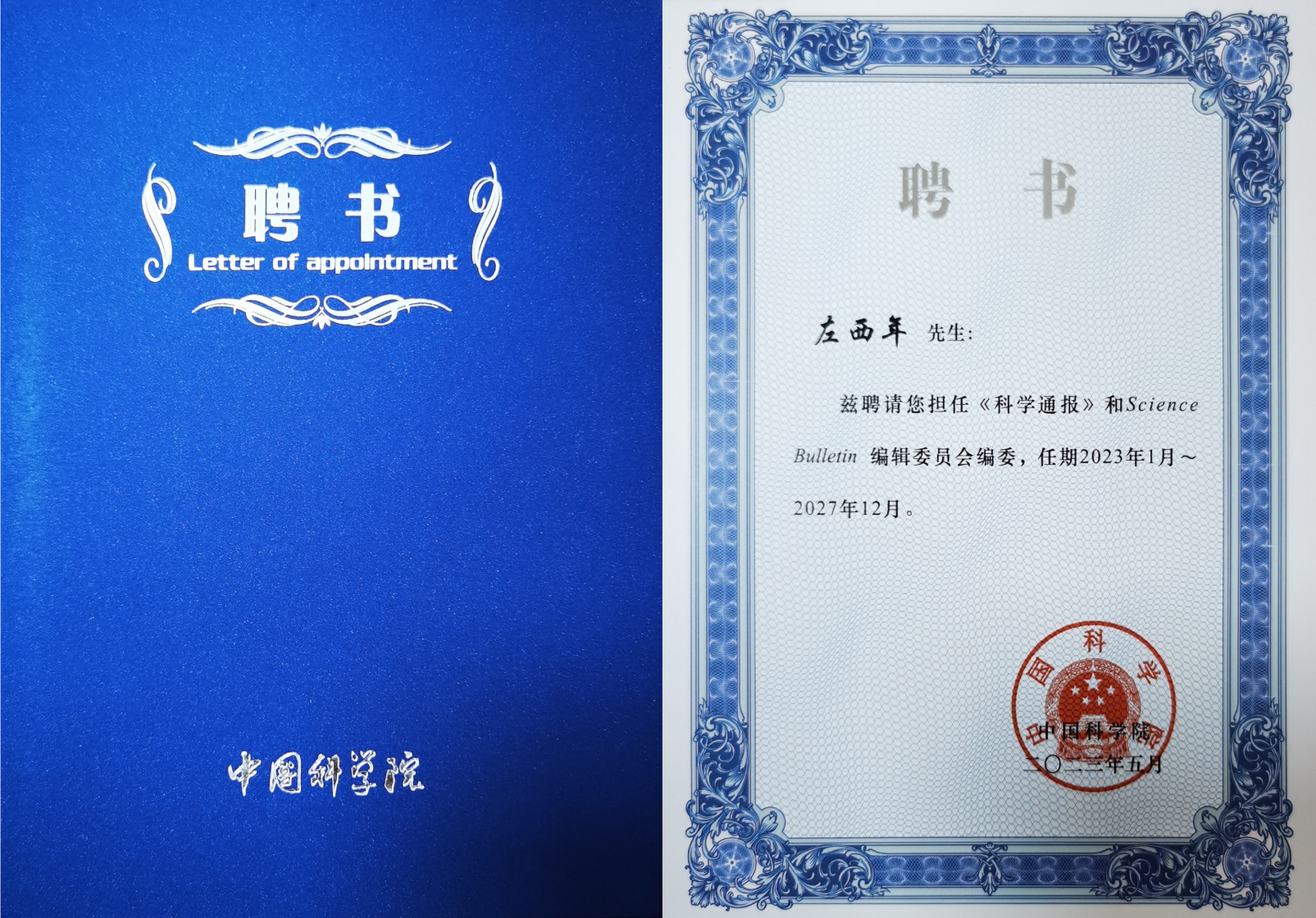 | 【新闻】98色花堂 左西年教授受聘担任《科学通报》和Science Bulletin编委 |