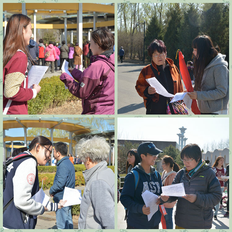 心理学院本科14级第二团支部的同学们在奥林匹克森林公园进行了“春季防抑郁”的宣传活动。