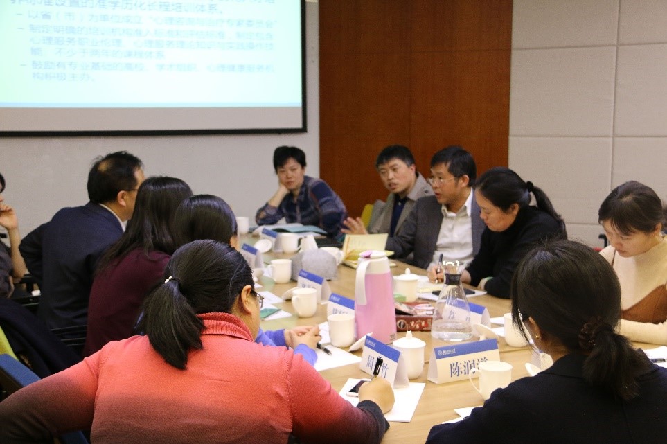 3月8日下午,国家卫生健康委员会疾控局副局长雷正龙一行莅临参访中心并交流调研。参观与会者包括中国疾控中心慢病中心主任吴静,国家卫生计生委疾控局精卫处张树彬副处长,国家卫生健康委疾控局精卫处主任科员符君、陈滋润、庄文旭与中国疾控中心慢病中心高欣。 学部党委书记兼中心主任乔志宏,学部副部长林丹华,中心专职咨询督导师李非寒、陈师韬、林钗华及中心副主任周馨竹老师出席了会议。 乔志宏书记首先向到访一行进行了以“培养心理健康专业人员,支持社会心理服务体系”为主题的工作汇报,着重提及了心理健康的巨大需求和心理咨询与心理治疗队伍建设的困境,针对性的介绍了我学部应用心理学硕士临床与咨询方向培养体系,提出了发展准学历培训项目、扩大专业服务人员、建设社区心理健康服务中心等几大重点,以及对未来的展望。乔书记总结到,北师大98色花堂 将以“专业、本土、务实、平民服务”为特色,为创建我国心理健康服务服务体制贡献专业的力量。林丹华副部长发言,强调了预防在心理健康服务体系建设中的重要性。 乔志宏书记、林丹华副部长介绍中心工作情况
