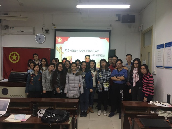 2016年12月19日,心理学院15级第1团支部于晚八点在教二102成功举行了以纪念长征胜利80周年为主题的团日活动。本次活动由团支书孙洪力同学主持,一班同学全体参与。 晚八点整,团支书孙洪力同学宣布团日活动正式开始。首先,孙洪力同学以时间为线索,带领同学们一同回顾80年前的那段血泪史,重点讲述了红军在行军过程中是如何以藐视一切困难的革命精神,克服常人难以想象的困难,历尽艰辛,胜利完成长征的,同学们被伟大长征精神深深打动。 随后,同学们一起观看了习主席在纪念长征胜利80周年的讲话精选片段。习主席在讲话中说道:“长征永远在路上。”我们这一代人的长征,是要实现“两个一百年”奋斗目标、实现中华民族伟大复兴的中国梦;作为大学生的我们的当前长征是要学好专业技能知识,为建设中国特色社会主义做好准备。 同学们深受鼓舞,在团支书的引导下,列下了自己在本学期复习阶段的目标,并做好规划,填写在周计划表中。同学们信心满满,将自己的计划划分为长征的八个部分,分别为冲破敌人四道封锁线、强渡乌江、遵义聚首、四渡赤水、巧渡金沙江、飞夺泸定桥、翻越夹金山、草地脱险,约定每完成一个部分的任务就会到班级公众号后台打卡,相互勉励,共同进步。 最后,同学们每人拿到了一份空白的假期计划表,希望同学们可以在现阶段以及未来都牢记伟大长征精神,走好脚下的长征路。 通过本次活动,同学们不仅加深了对伟大长征精神的理解,而且对自己近期学习计划有了明确的认识,实现了伟大长征精神与个人现实生活的结合。同学们将保持理想信念坚定,作为共产主义远大理想和中国特色社会主义共同理想的坚定信仰者、忠实实践者,永远为真理和理想而斗争。
