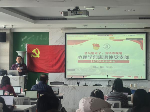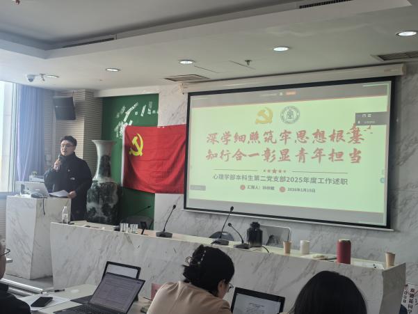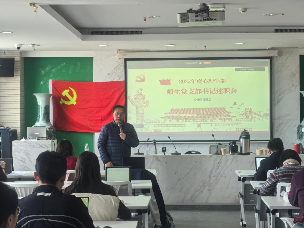 述职结束后,党委书记乔志宏作总结发言。他先是对各党支部2025年的工作与思考表示充分肯定,然后对各支部未来一段时期的工作方向提出3点明确要求。他强调:一是在理论学习方面,各支部要深刻领会二十届四中全会及相关政策文件精神,准确把握中国式现代化的核心内涵与实践要求,同时引导党员结合理论与国情,深入思考国家与民族的发展走向,提升政治判断力与思想领悟力。二是在心理学专业实际应用方面,党支部书记要带领师生聚焦重大议题,展现党组织的责任与担当,要主动谋划学科发展的突破路径,思考如何更好地服务国家战略与社会需要。三是在党员身份认同与责任担当方面,他要求全体党员与积极分子持续强化身份意识,在学术研究、本职工作与社会服务中追求卓越,以实际成长践行先锋模范作用,真正将党员的身份认同转化为推动学部高质量发展的坚实力量。