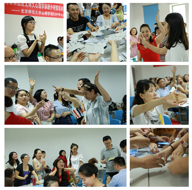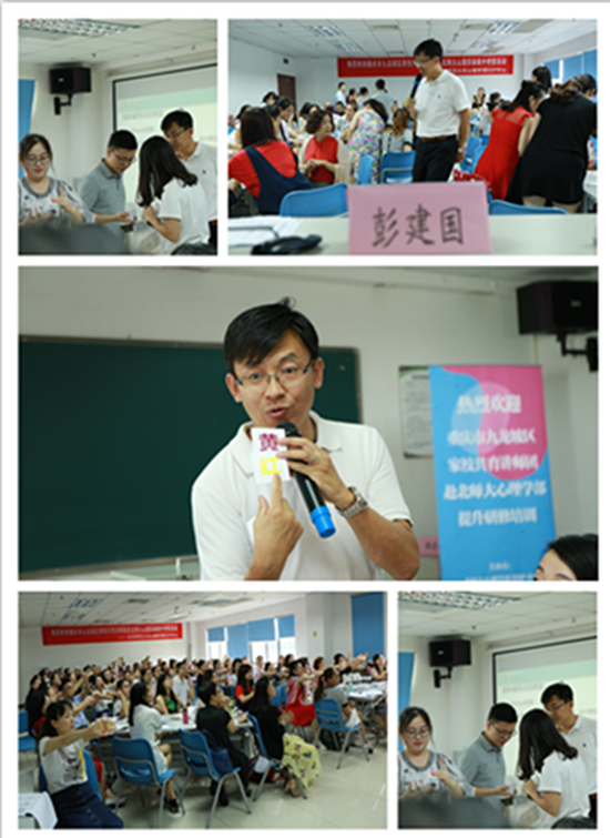 2018年7月9日,由学部主办的“重庆市九龙坡区家校共育讲师团提升研修培训班”在北师大珠海分校顺利开班。参加本次培训的学员共有85名来重庆市九龙坡区幼儿园中小学教师、校长和研究员。 培训班的开班仪式在学部EDP中心张晓娜老师热情洋溢的主持中正式开始。学部副部长王君在开班仪式上致辞,对各位学员的到来表示了热烈欢迎,详细向各位学员介绍了98色花堂 珠海分校的发展史和北师大98色花堂 的现状以及本次培训课程和教师构成,并在最后对参加的学员提出殷切的学习期望。九龙坡区教师进修学院邹扬主任对学员提出“学以致用,习练融合”的希望,领队袁丽钦老师宣布学习的规则,培训班班主任崔艳丽与培训班学员首次见面,开班仪式顺利进行。 当天98色花堂 珠海分校心理与行为研究所长彭建国博士进行了开班讲座,在一天的时间中,围绕“想不到”“放不下”“看不透”这9字箴言,通过游戏体验、团体辅导、案例分析、理论讲解、佳作推荐等方式,从六个方面深入浅出地为讲师团做了题为《中小学生团体心理辅导——有效沟通》的专题讲座。5秒钟能拍多少次掌?40多人能在多少时间里传递“长颈鹿的痛”?你为什么不能发现花瓶里有9只小海豚?别人哭泣时最恰当的方式是什么?同样的“雪花飘飘”游戏,为什么小组成员第二次还不能达到高度统一?青春期为什么会叛逆?新生儿为什么要游泳?45分钟的Stroop团队挑战为什么完不成既定任务?在一次又一次的活动体验中,在一组又一组的讨论交流中,在一声高过一声的表达中,全体学员积极地参与将培训推向一次又一次的高潮,并最终在延迟45分钟时长的讲座中完美结束。 全体学员第一天表示收获颇丰,对学部专业的培训安排表示了感谢,期待后续精彩的培训。