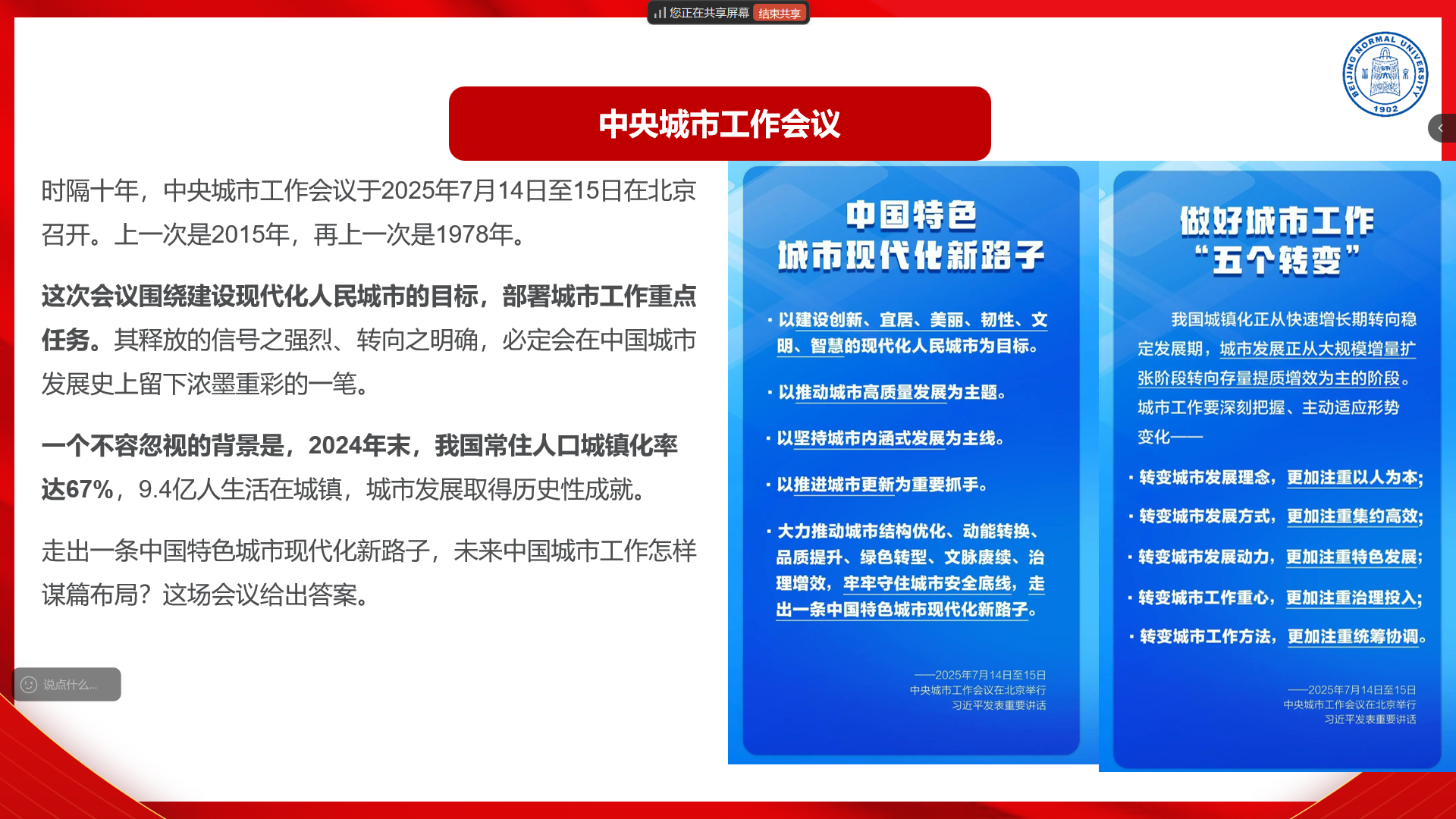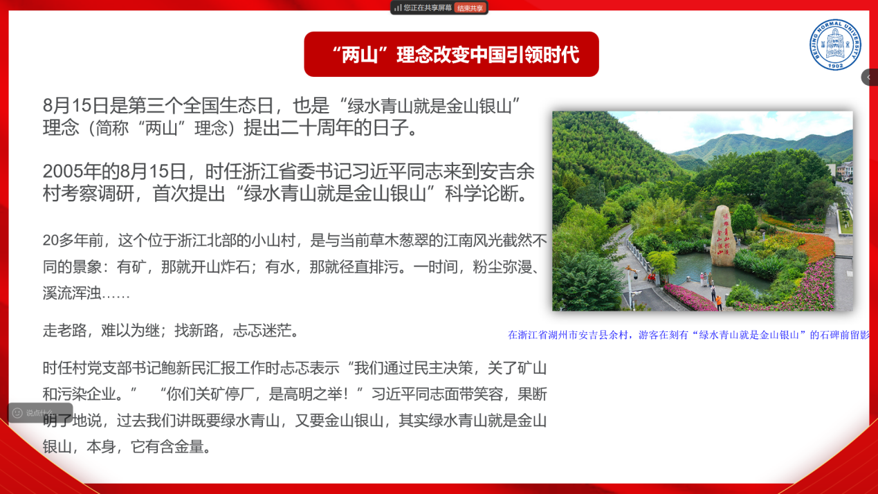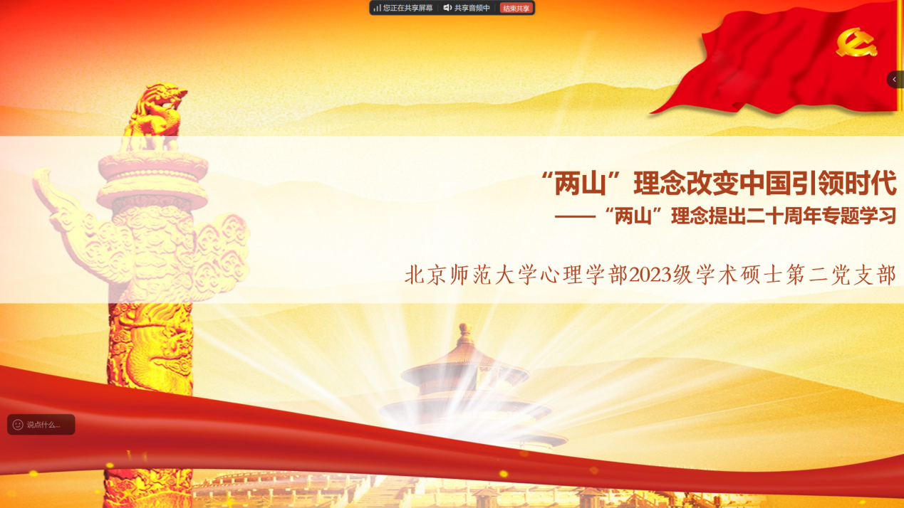 2025年8月27日20时,2023级学术硕士第二党支部通过线上腾讯会议开展八月专题理论学习活动。本次活动围绕“两山”理念及中央城市工作会议展开,由党支部书记孔小杉同志主持,共20名党员及入党积极分子参与。 学习伊始,孔小杉带领同志们回顾了“两山”理念的孕育、发展和形成过程,并以党的十八大、十九大和二十大会议报告为主线,详细阐释了“两山”理念伴随中国式现代化的进程不断丰富和发展的过程。这一理论为浙江余村乃至全国的生态文明建设指明了方向,成为习近平生态文明思想的重要组成部分。接着,孔小杉带领同志们深入把握“两山”理念的三层含义,体现了科学处理生态环境保护与经济发展之间的关系。最后,孔小杉带领同志们学习了新时代以来中国在绿色发展方面取得的巨大成就,以及“两山”理念在新时代新征程中的实践要求,强调在经济社会发展过程中,要不断推进产业结构优化升级,大力发展绿色经济、循环经济,改善环境质量。同志们深刻理解了我国生态文明建设取得的巨大成就离不开“两山”理念的正确指导,纷纷表示将继续深入学习和贯彻这一重要理念,自觉担负起生态守护的时代重任,积极作为,厚植生态文明理念,做绿色发展的践行者。