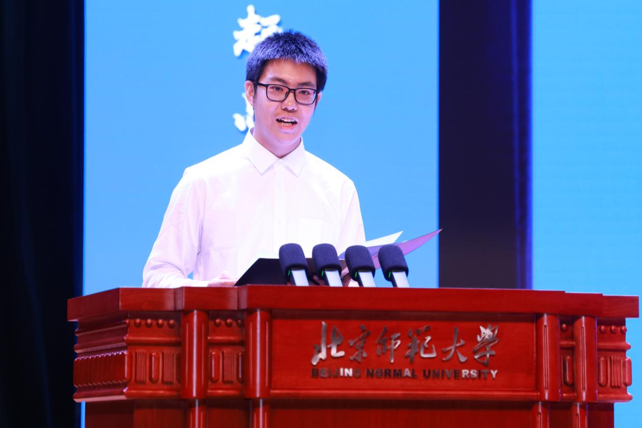 2025级工业与组织心理方向专业博士周群力代表专业研究生新生发言。周同学以个人从业经历为例,分享了对专业学位学习的体悟:要学会“两条腿走路”,一条腿是研究,一条腿是实践,立志在北师大这片心理学沃土上“研究真概念,解决真问题”,用研究推动实践,用实践回馈社会。