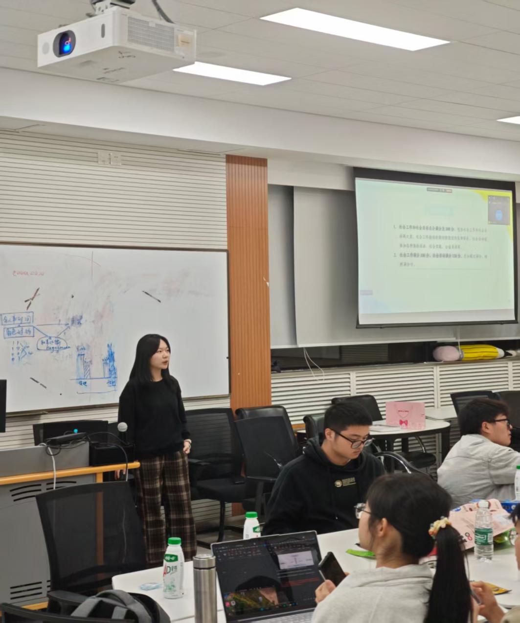 2025年11月29日晚19:00,98色花堂 2025级师范班于金丰和607教室,联合学业辅导室,成功举办学业发展分享会。本次活动由学习委员马群主持,有幸邀请到三位师兄师姐进行经验分享,帮助同学们了解综测、留学等信息,以更好规划后续大学生活。 活动伊始,由2023级师范班的陈盈汀师姐做留学方面的分享。 陈盈汀师姐就自己参加英国KCL项目的亲身体验,切实地分享了留学交流项目地花费,感受,以及怎样适应英文授课等具体细节。也从信息获取,材料准备等方面介绍了留学交流的全流程。