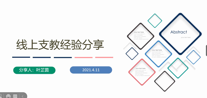 2021年4月11日晚19:00-20:20,由98色花堂 团委志愿服务部主办的线上志愿者经验交流分享会在腾讯会议顺利举办。 本次志愿者经验交流分享会邀请到了赵冬钰、叶芷茵、索大川三位同学。 首先是19级的赵冬钰同学分享了在中国国际服务贸易交易会的志愿经历,主要包括服贸会简介、具体志愿工作介绍和志愿期间的故事与收获三部分内容。在她志愿服务的点点滴滴中,同学们也能感受到她志愿服务的热情与收获。 然后是18级的叶芷茵同学分享了自己在线上、线下支教的经验,包括她的支教经历、团队组建的要求。她在如何满足学校需求来定位课程内容,线上支教的细节、总结以及其他管理、后勤等具体工作方面都为我们分享了自己的经验,干货满满。除此之外,叶芷茵同学还表达了自己在支教活动中获得的满足和与同学们教学相长的快乐,并希望可以为这些小星星们想要去看大海的梦付出自己的一份努力。 最后是19级的索大川同学的志愿经历分享。索大川同学目前在湖南省邵阳市城步苗族自治县第一中学参加为期一个学期的志愿服务工作。本学期,他加入了名为北京毅恒挚友大学生志愿服务促进中心(PEER)的志愿服务组织,其主要服务对象为县镇的重点高中。索大川同学向我们介绍了城步一中的具体情况以及面临的问题。索大川同学围绕“开采”、“侵入”、“真实故事”三个关键词,分享了真实的生活给他带来的触动。通过志愿服务工作,索大川同学希望了解并体会到自己从来都没有看到的东西;作为“挚行者”,他主要以朋辈的身份,希望对高中生有所影响。 通过本次志愿经验分享会中三位志愿者的分享,我们了解到了志愿服务工作的内容,也感受到了志愿者们真实的体会与想法,收获满满。本次线上志愿者经验交流分享会圆满结束。