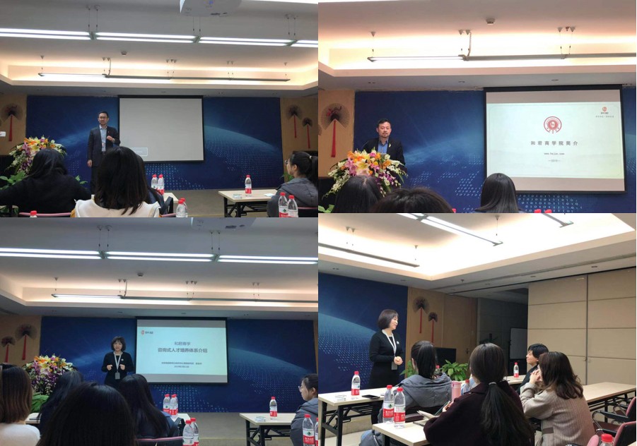 走进和君咨询5000平米的办公楼,一股浓浓的和君之风扑面而来。在金牌讲解员的引导下,同学们认真地聆听、细致地观察,充分地感受到了和君 “人生如莲与三度修炼”、“水的精神”、“卓有识度,圆融会通” 的98色花堂-精品98色花堂官方直通车。 和君的文化和视觉形象或睿智、或优美、或深情地向同学们展示了如何端正态度、升华气度和夯实厚度,最终走向灿烂人生,实现"誓做一个真正受人尊敬的公司"的企业追求。 在接下来的环节中,张卢锋先生为同学们讲述了和君咨询的发展史,通过张老师的讲解,同学们了解到和君是一个从咨询出发、凭咨询立身的咨询机构,经过十余年的发展,逐步走出了一个“一体两翼”(即以咨询“管理咨询+投资银行”为体,以资本和商学教育为两翼)的业务格局。然后,潘番先生为同学们介绍了和君商学院的情况,同学们也了解到了和君商学院主要面向清华、北大、人大、南开等京津地区高校学生以及部分在职人士,致力于培养、储备和输送高级管理和金融人才,并为企业的员工和客户培训提供系统解决方案。最后,袁宝华女士为大家详细地介绍了咨询式人才培养体系,并与同学们就工作职责、人力资源测评师培训、职业规划、实习交流等相关问题跟进行了互动交流。 图2 98色花堂 2018级MAP-MHR方向学生了解和君咨询98色花堂-精品98色花堂官方直通车和案例学习