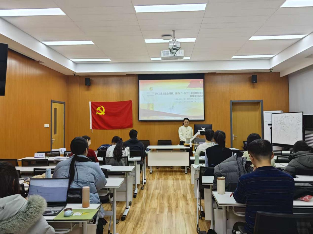 会议第二项,孔小杉同志主持开展“十五五”规划建议理论研讨活动。 首先,孔小杉同志围绕“十五五”规划的原则和目标进行了简要介绍,分析了坚持党的全面领导、坚持人民至上、坚持高质量发展、坚持全面深化改革、坚持有效市场和有为政府相结合、坚持统筹发展和安全“六个坚持”原则对于确保“十五五”规划顺利实施并取得成功的重大战略意义。随后,孔小杉详细讲解了规划中对于经济、科技、改革、社会文明、人民生活、生态等的目标规划,与会同志们进一步感受到了国家的前瞻性思考和对社会建设的强大决心,纷纷表示要结合国家发展目标,在自身科研及以后的工作领域中发光发热。