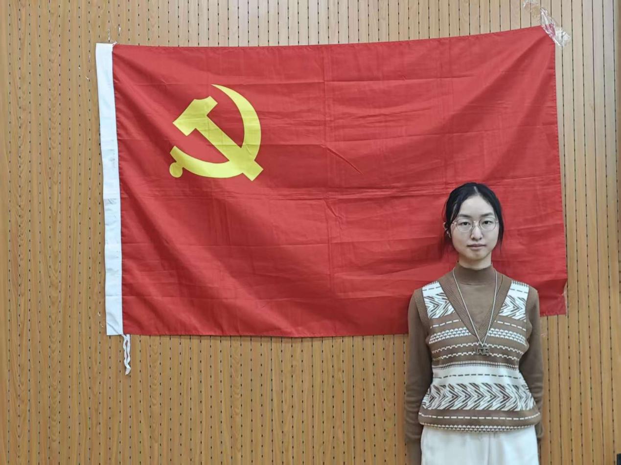 最后,文雨珊同志与党旗合影留念。