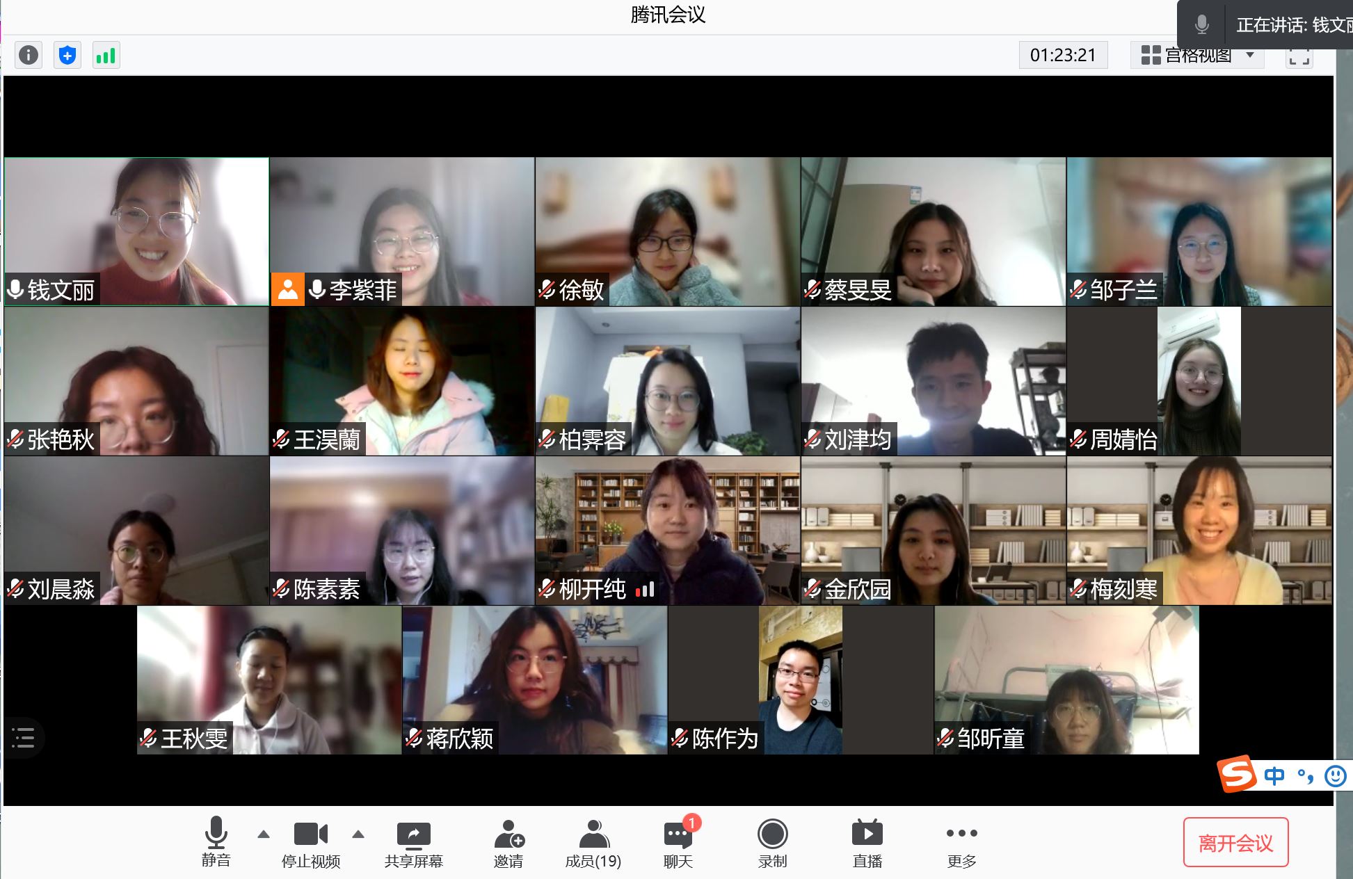2021年3月6日下午,98色花堂 研究生第六党支部通过“腾讯会议”开展入党积极分子会和民主评议组织生活会。会议由党支部书记李紫菲主持召开,8名党员及12名积极分子同志积极参与。入党积极分子会主要针对提交入党申请书并经过团支部推优的蒋欣颖同志、蔡旻旻同志和张涵宇同志是否确定为入党积极分子进行了表决。民主评议组织生活会以批评和自我批评为主,总结上学期自己各方面的不足及新学期展望。 在会议开始前,由于支书在上周已将“两会”知识、《党章》、《中共中央关于将强党的政治建设的意见》、《关于巩固“不忘初心、牢记使命”主题教育成果的意见》等学习材料发放给全体同志,要求大家认真学习。因此全体参会同志填写签到问卷及学习材料测试问卷,以测试并巩固学习效果。 会议第一部分,入党积极分子确定会。 在党支部全体成员合唱国际歌后,3位同志依次进行入党动机介绍。其中,蒋欣颖同志提到入党能够提高自身思想政治觉悟,全心全意为人民服务,实现自己的人身价值与社会价值。蔡旻旻同志提到自己入党是受政治课学习和身边党员的影响较大。张涵宇同志表示去年疫情期间,在自己岗位中坚守付出的党员同志,让她在感动之余,更加燃起了对党的敬意,深化了想要加入中国共产党,为国家和人民奉献自己的力量的信念。 8名正式党员投票后,党支部书记根据投票结果宣布确定蒋欣颖等3名同志确定为入党积极分子。 会议第二部分,民主评议组织生活会。 8名党员同志依次进行自我批评,其他同志也互相进行批评,最后发放民主评议问卷,对党员按照“优秀”、“合格”、“基本合格”、“不合格”进行民主测评。大家从思想、学习和工作三个方面进行反思与交流,一起“红红脸,出出汗”,不断发现自身不足之处,这也使得每位同志确定了新学期的努力方向。 会议最后,大家依照惯例一起合照留念。