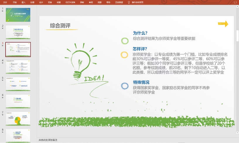 本次班会详细地解释了综测的算法以及需要同学们提交的材料,回答了师范班同学们对综测存在的疑问,从综测是什么,我们为什么要评综测,到怎么评综测,有什么特殊情况,班会主持人都做了详细的解释。