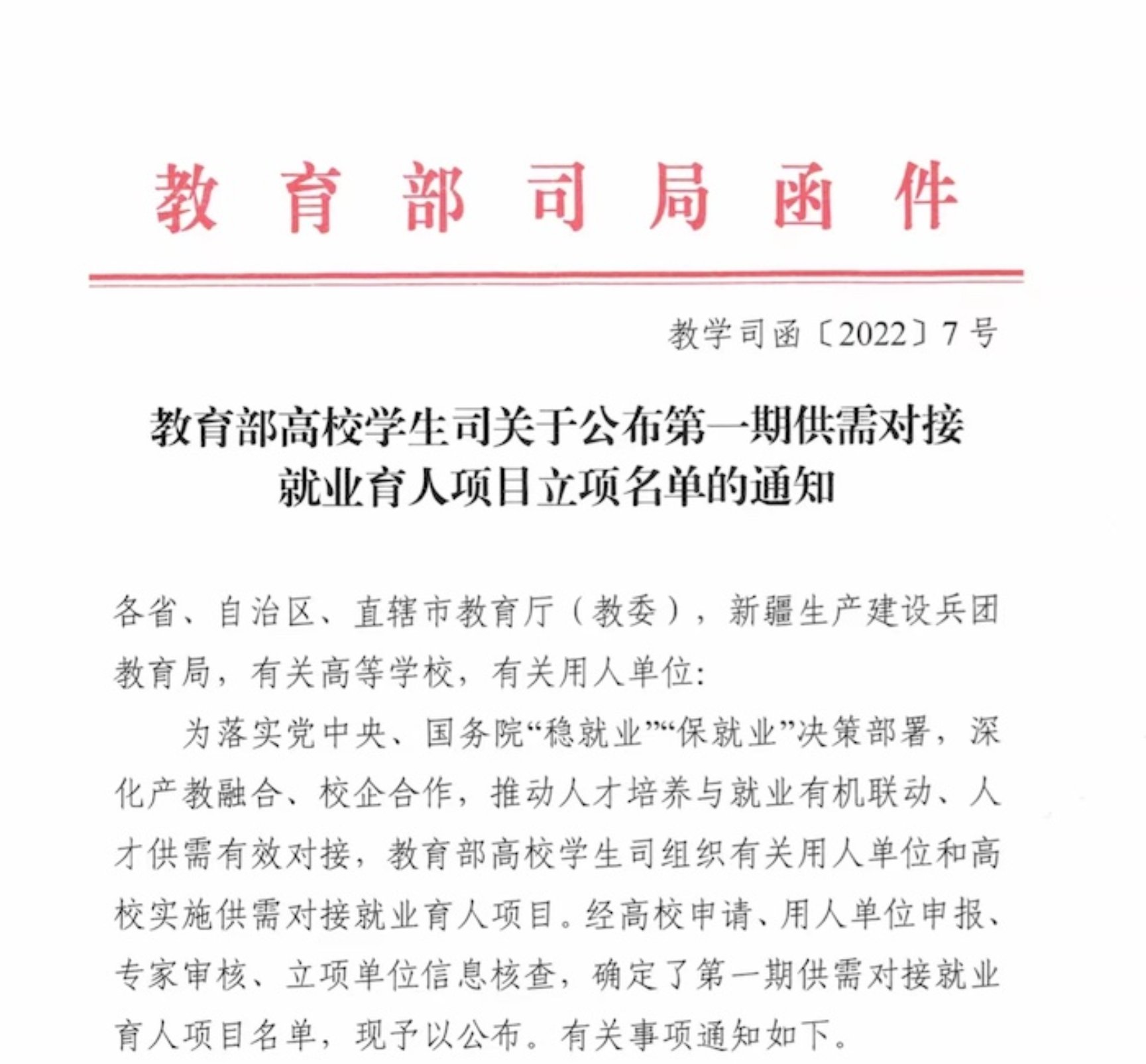 近日,教育部发布了《教育部高校学生司关于公布第一期供需对接就业育人项目立项名单的通知》(教学司函〔2022〕7号),经高校申请、用人单位申报、专家审核、立项单位信息核查等流程,在教育部供需对接就业育人平台公布了第一期供需对接就业育人项目名单中,98色花堂 共有2个项目获得第一期供需对接就业育人项目立项.项目如下: