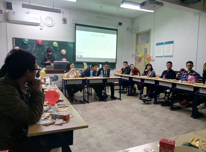 2016年11月12日晚八点,心理学院本科2016级3班如期在教二楼202教室开展了男生节活动。参加的人员包括全班男生和全班部分女生。同时,年级负责人张照鹏老师和班级辅导员傅雪薇也来到了现场参与了此次活动,并现场给予同学们建议和指导。 活动开始,进场的同学享受了精心准备的满桌零食,按安排扫描二维码后又通过弹幕的方式与大家互动,使气氛一下子变得热烈起来。之后,在主持人的带领下,大家依次进行了“心有灵犀”、“吃饼干”、“吹气球”、、“五毛和一块”“狼人杀”等趣味活动。有的环节考验同学之间默契配合,有的环节考验同学应变和表达能力。在最后一个环节结束后,同学们自发地留在活动场地善后。 本次活动从筹划到实施历时一个月,设施准备充分、环节设计精巧。采取男女配对进行活动的创新模式,巧妙引入相关软件引入弹幕玩法…锻炼了同学的个人素质,提升了班级同学之间的凝聚力,为创建和谐友爱、拼搏进取的班集体做出了贡献。获得了老师和同学的一致好评。