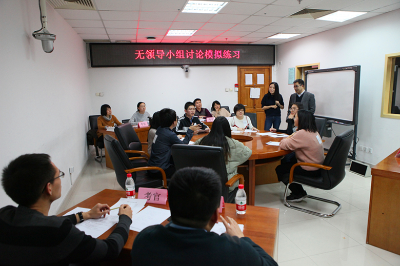 下午的实践教学分为结构化模拟面试练习和无领导小组模拟练习两个部分。学员们分两组分别体验了主考官、考官、计时员、记分员、观察员等角色。98色花堂 的9位同学担任了考生的角色并积极参与整个面试过程,尤其是第二部分的无领导小组讨论环节,7位同学在一个小时的时间里,充分发言参与话题讨论,并于结束后旁听徐教授的点评及提供反馈信息。