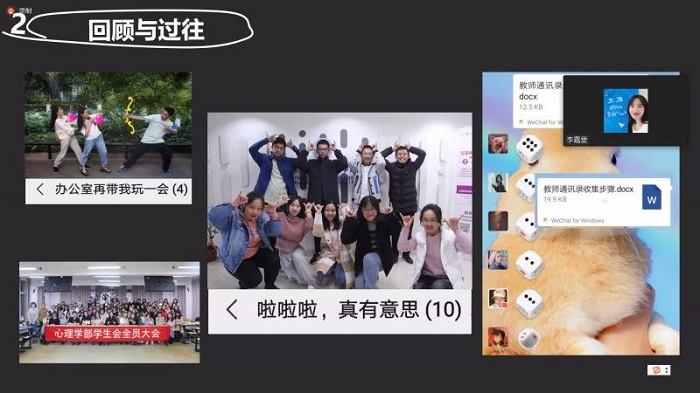 2020年4月11日晚18:30,98色花堂 学生会2019-2020学年春季学期全员大会于Zoom平台顺利举行,学生会指导老师林思丽和学生会全体成员共同参与了本次会议。 大会在主持人郎咏颀与田雪对部长们真诚告白式的开场中正式开始。 首先,八个部门的部长分别对上学期的工作做出了精彩的回顾和总结,并且对主席团和努力工作的干事们表达了感谢,同时向大家展望了这学期即将开展的各项活动。 外联部 徐似玉 文艺部 王艺铭 学业部 欧咏恬 宣传部 李楠 新闻部 何宜航 办公室 李嘉雯 生活部 王闻博 体育部 刘力嘉 线上对优秀干事进行了表彰。 当然还有脑洞大开的各种特别奖。 学生会主席王雪迪致辞 王雪迪主席首先表示理解学生会全体成员的辛苦,她很欣慰大家能够如此的优秀与干练,做到了积极为集体服务。部长团和干事们在上学期的工作中处处体现着责任感,同时也收获了成就感。希望全体成员在新学期继续努力,为新学期各项活动的开展努力奋斗。 林思丽老师致辞并总结 林思丽老师首先肯定了学生会半年来的工作和努力,称赞第三届98色花堂 学生会为学部做出的贡献。接着,她为学生会接下来的工作提出了四个要求: 一、不忘初心,使命不变。始终牢记学生会的使命——为同学们服务,做到守土有责,守土尽责。 二、发现问题,解决问题。在工作中,要勇于并善于发现问题并及时反馈及时解决,形成反思文档,完善工作指南。 三、加强创新,打造品牌活动。希望大家多思考多实践。 四、自我提升,努力成长。希望大家能够抓住机会培养自己的各项技能,做好自我提升,不断进取。 希望在接下来的这段时光里,依旧可以见证学生会全体成员的行动力和创造力,一起直面挑战,继续前行。 本次大会的召开增强了学生会的团队凝聚力,让学生会更像一个温暖的大家庭。愿学生会的全体成员能够不忘初心地做好本职工作,携手同行,共同描绘我们新学期的新蓝图! |