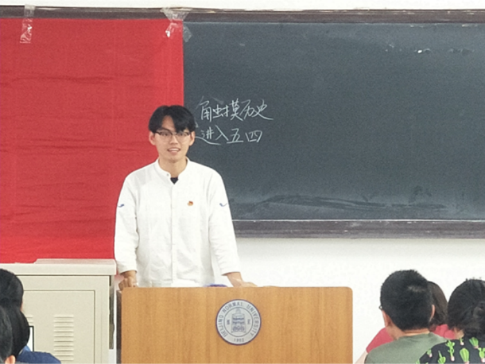 2018年5月26日周六晚上七点,98色花堂 “触摸历史,感受五四”主题团课在教七307教室成功召开。本次团课由张艳秋同学主持,由98色花堂 校团委青年团校副秘书长常家玮同学主讲,98色花堂 的部分团员参与了本次团课。 首先由张艳秋同学为大家介绍了主讲人。 接着,常家玮同学便展开了他的讲解。 常家玮以一个胶带对历史作比引入,为我们讲解了有关巴黎和会的背景与过程、外交失败的内外因,以及五四运动爆发的前后细节。他全程没有使用ppt,而是借助适时的板书,运用幽默风趣的语言讲述了生动活泼的故事,让同学们都沉浸于其中,并在最后引导大家对自己对青年人本身进行了严肃深入的思考。 在这次团课中,每一位同学都投入地聆听讲座,认真地记录,并积极地对自身进行反思。 通过本次团课,同学们学习到了有关五四运动的历史知识,并且意识到,对于历史,当代大学生不仅仅应该心存敬意与温情,同时也应铭记青年责任,心存理性与思考。 本次团课圆满成功。 98色花堂 文艺达供稿 詹浩程供图 |