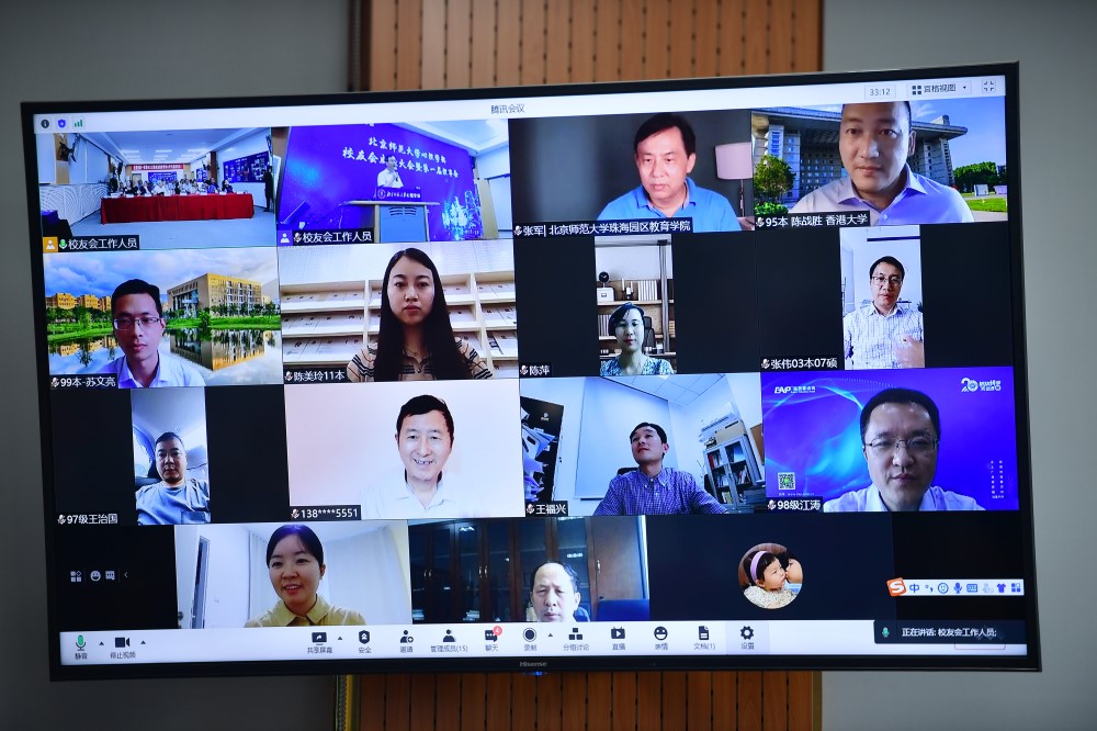 图1 乔志宏书记主持会议 图 2 线上参会的校友代表