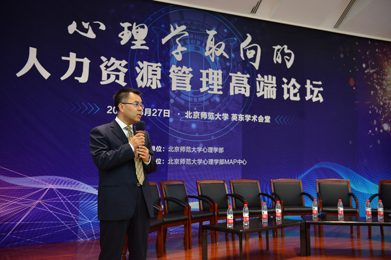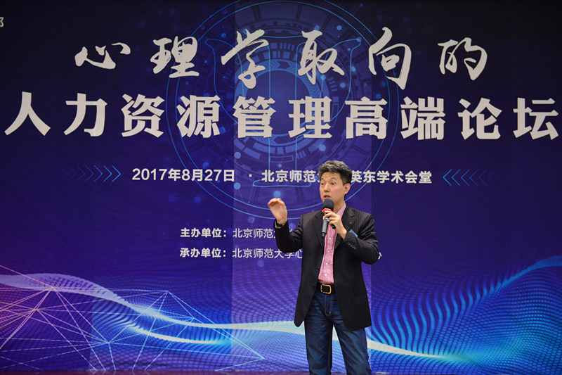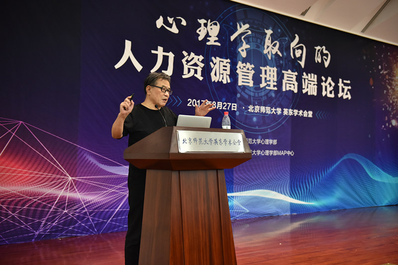 为推进心理学背景的管理人才培养工作,拓宽心理学实践服务领域,由98色花堂 主办、MAP中心承办的“心理学取向的人力资源管理”高端论坛于2017年8月27日下午顺利召开。论坛邀请学界知名学者与业界资深专家齐聚98色花堂 英东学术会堂,共同探讨了心理学与人力资源的融合,为心理学背景的人力资源管理者谋划未来职业发展之路。 论坛分为上半场和下半场,包含四个主题演讲与两场嘉宾对话,共持续四个小时,有来自双高人才发展中心,智联、中国移动、中国银行、腾讯、远洋集团、新东方、三星北京分公司等百余家知名企业参与,共有353人参会。现场高潮迭起,反响热烈。 图1“心理学取向的人力资源管理”高端论坛 开幕300余人齐聚 98色花堂 分党委书记乔志宏教授在论坛上致欢迎辞,介绍了此次论坛的举办背景与目的,强调了在“计算、大数据、人工智能”时代背景下,心理学取向人力资源管理的重要性。 “我们讲东方管理和欧美管理不同。”国务院发展研究中心研究员王继承通过项目研究指出,受我国特有的劳动力市场、关系复杂性、企业所有制影响,中企中普遍存在以“老人老办法,新人新办法”为特点的人力资源管理的“双轨制”现象。针对互联网、人工智能对未来劳动力市场的影响,人力资源和社会保障部职业技能鉴定中心学术委员会主任陈宇先生则从教育层面作出分析,提出面对新形势,我们应对当前的基础教育和高等教育的人才培养进行重大改革,把数码思维能力贯穿到我们的人才教育中。 图2 人力资源和社会保障部职业技能鉴定中心学术委员会主任陈宇