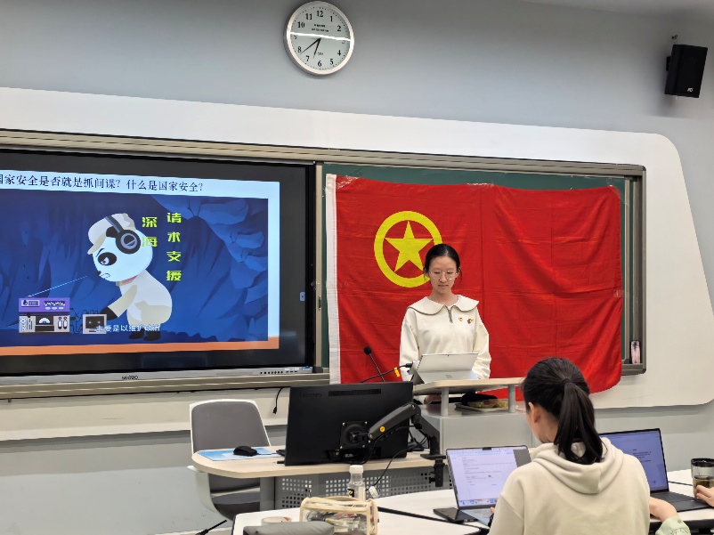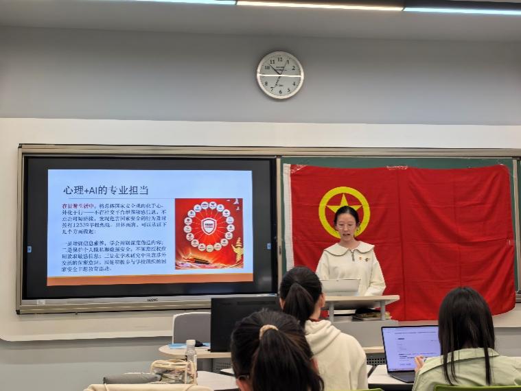 团支书随后进行深入讲解,指出作为心理+AI专业的学生,应在AI安全、心理安全、网络安全三方面着力,以专业所学服务国家安全大局。同时,在日常生活中做到不泄露敏感信息,发现危害国家安全行为及时拨打12339举报。
